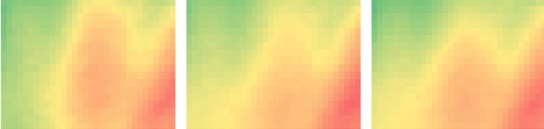 以下是红绿蓝三原色面内亮度分布图,用色彩进行表示(红色表示高亮度,绿色表示低亮度)