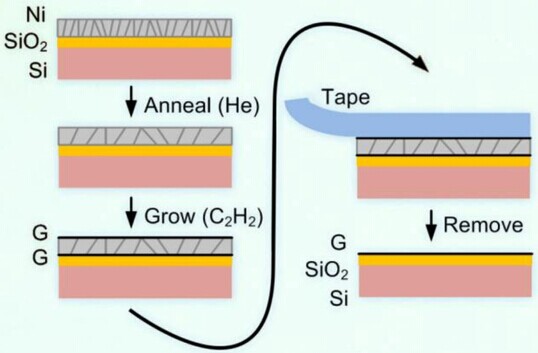 制备石墨烯的一般方法在高温炉中通入含碳气体,使得石墨烯沉淀在铜或镍等金属上,但要真正使用石墨烯,还需要将它从金属上转移到硅片或高分子薄膜等基底上,这个过程比获得石墨烯还要复杂,而且可能会破坏和污染石墨烯。